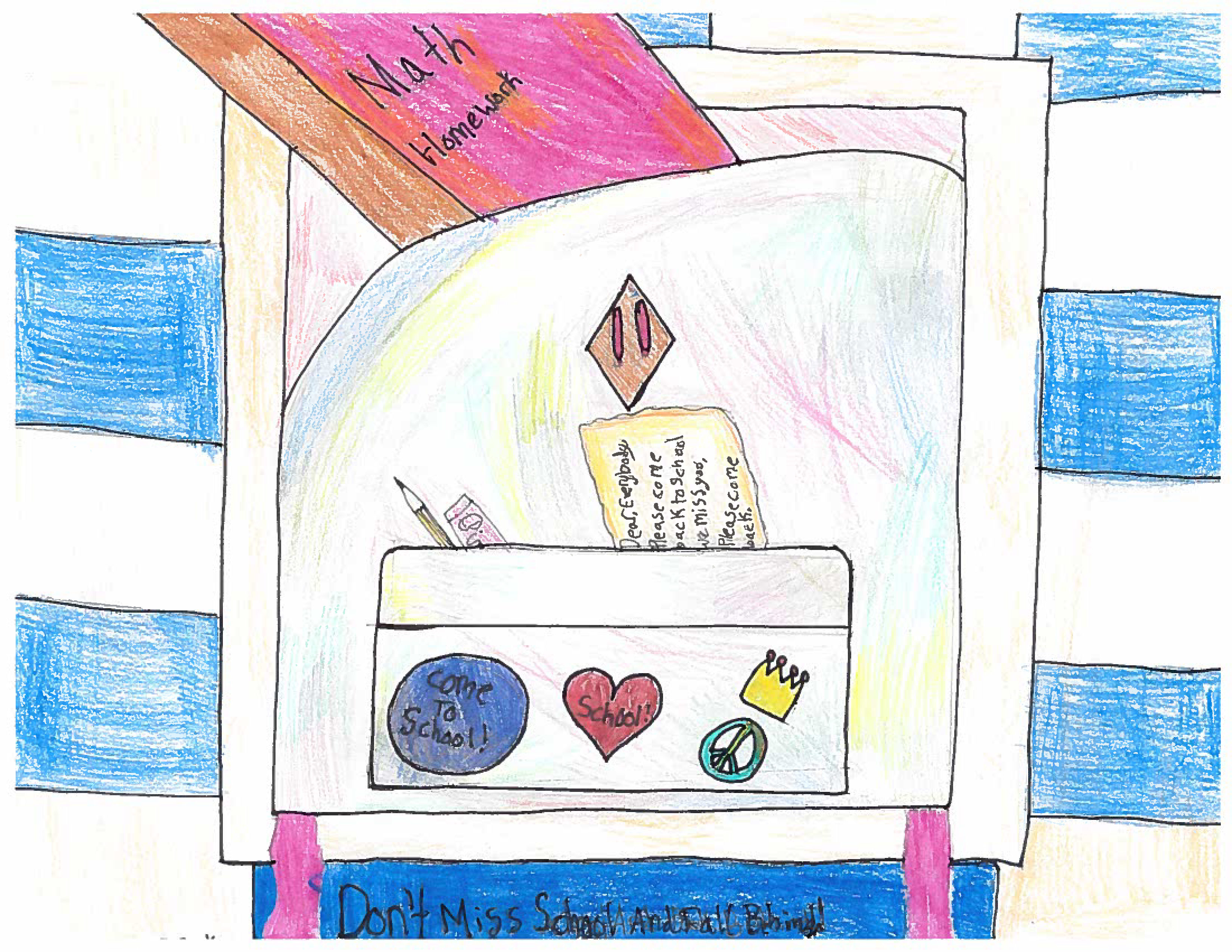 During Attendance Awareness Week some South Shore Elementary Schools held a poster contest to promote positive attendance. Many great artwork submissions came in and we’d like to thank all students that participated. Calla B. was the winner from Dr. John C. Wickwire Academy; congratulations! Also included is artwork from other students – all with great messages about attending school on time and regularly.
